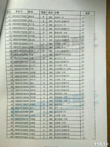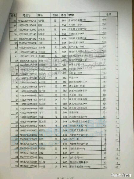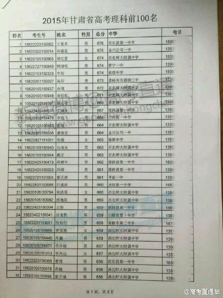 甘肅省2015年高考文科狀元出爐,來自民樂一中的王復英以總分676分摘取理科第一名桂冠。文科狀元惠雅婕來自西北師大附中,總分660分。