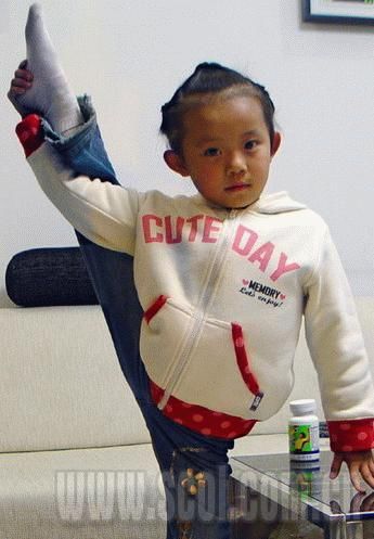 “我讀學前班時,班上一個女同學會側翻,然后她就教我翻了。”談到開始學側翻的經歷,曾芮琪靦腆地笑著說純屬偶然。她5歲上學前班時,班上一個會側翻的女孩子當起了她的“師傅”,準備將此“獨門絕技”教給曾芮琪。