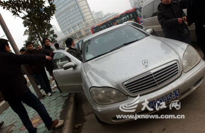 當天上午10時許,洛陽路靠近南站廣場路口有許多等車的乘客。這時,一輛牌號為滬D-085××、價值200余萬元的頂級新款奔馳600小車停在路旁,邊上站著兩名男子,其中一人高聲叫嚷:“有沒有去武寧的?每人200元,馬上就走!”這一幕被巡查至此的南昌市政公用事業局行業監查處執法人員注意到了,這么高檔的車跑非法客運?