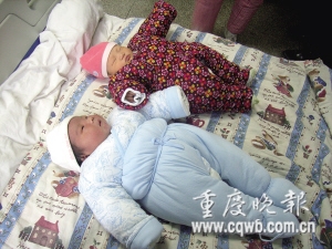陳莉說,懷孕時,她肚子比一般孕婦大!岸颊f懷了雙胞胎!标惱蚪榻B,懷孕期間,她一頓要吃兩三碗飯,愛吃肉、水果,最大運動是吃完飯后散步!熬迡搿背錾螅惣颐Τ梢粓F——事先準備的嬰兒衣服太小,只好現買。陳莉嫂嫂黃琳介紹,小家伙每次吃完母乳,還要再吃30多毫升牛奶。