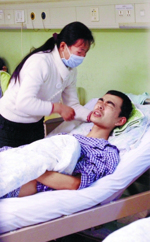 高志強(qiáng)躺在病床上。本報(bào)記者 王貴彬 攝