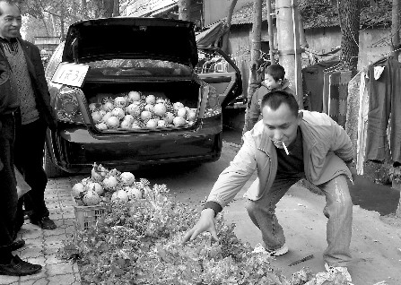 “新鮮蘿卜,1元錢3斤了哦!”一名男子站在蔬菜攤前叫賣,他就是別克車車主。“市場上要接近1元錢1斤,這個蘿卜便宜多了,給我來幾斤哈!”“我也要……”由于價格便宜,菜也新鮮,過往市民路過此處紛紛駐足、掏錢買菜。