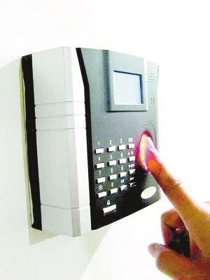 他稱,目前市面上的指紋考勤機多是激光型的,它的工作原理是激光射在人的手指指紋的凹凸面上反射回感應板上,而后形成一幅圖片,與之前員工登記時采集的手指指紋圖片進行比較,如果相同則被確認是本人,不同則不是。激光射在硅膠指紋套上,如果指紋套上的紋路清晰,機器就會讓指紋套通過考勤記錄。