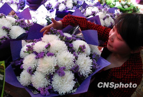 在北京,八寶山革命公墓啟動了“鮮花祭英魂”免費贈花活動。在廣東汕頭,雖然鮮花的價格受到云南干旱的影響,其中黃菊、白菊等祭祀常用花卉的漲價幅度達到了三、四成,但購買者仍是絡繹不絕。武漢市漢陽扁擔山公墓、秦皇島市殯儀館等地用鮮花祭祀的人比往年都增加不少。