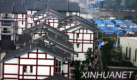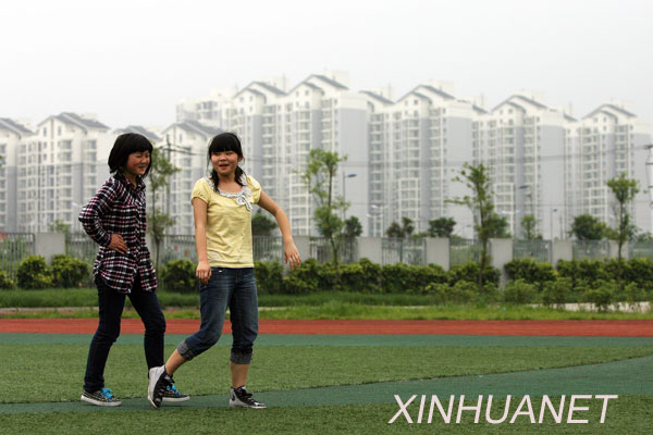 5月7日,兩名女中學(xué)生在學(xué)校操場(chǎng)上漫步,她們身后是新建成的安居住房。“5·12”特大地震使四川省都江堰市城鎮(zhèn)住房嚴(yán)重受損,共有10.89萬個(gè)家庭、30余萬人的住房不同程度地遭到破壞。曾經(jīng)物華天寶、山清水秀的小城,在短短的80秒地震后,變成了滿目瘡痍、傷痕累累的極重災(zāi)區(qū)。新華社記者鄭悅攝