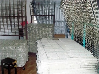 警方現(xiàn)場查獲的假發(fā)票和晾曬用的鐵絲架