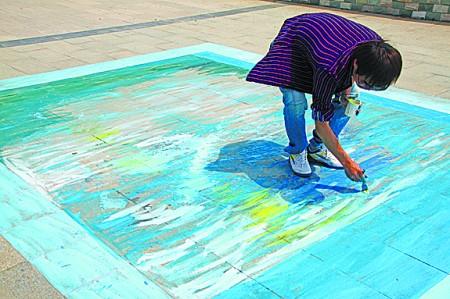 藍色粉筆,幾盒顏料,在畫師馬赫的畫筆下,能讓畫的水池“跳”出來。14日中午,畫師馬赫在臨沂涑河南街和狼牙王路交叉口的沿河廣場現場展現他的3D繪畫技能。