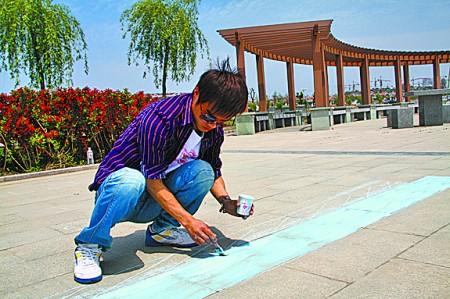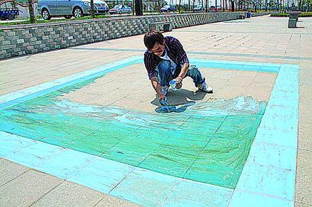山東男子癡迷“3D立體畫” 街邊作畫亂真(組圖)