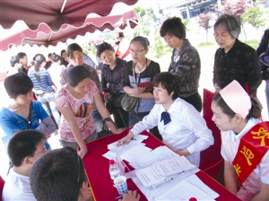 寧波康復(fù)醫(yī)院組織的廣場(chǎng)睡眠義診活動(dòng)上,咨詢市民源源不斷 記者 王博 攝