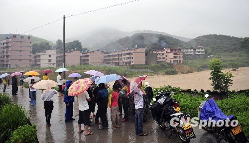 6月14日,南平市中南部普降暴雨,其中延平區(qū)降特大暴雨。當(dāng)日12時(shí)30分許,在縣道延塔線11公里處突發(fā)山體滑坡,將途經(jīng)該路段的1部中巴車和1部面包車(車內(nèi)司乘人員共31人)推入水流湍急的西塔溪中,其中7人獲救,24人失蹤。圖為案發(fā)現(xiàn)場西芹鎮(zhèn)福建農(nóng)林大學(xué)附近閩江邊,大家正焦急的等待搜救中。 中新社發(fā) 柳濤 攝