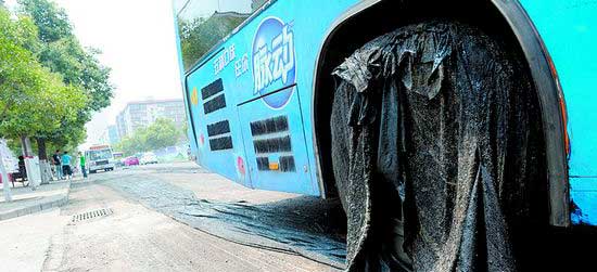 鄭州地面溫度太高 公交車被瀝青粘在路上(圖)