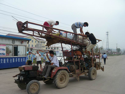 7月2日,(安徽)淮南交警大通大隊上窯中隊在轄區內,開展打擊機動車故意遮擋污損號牌、未按規定安裝機動車號牌、未懸掛機動車號牌等涉牌涉證違法行為的行動。10點多,正在服務站執勤的民警發現,一輛貌似“臥鋪”車的拖拉機“一蹦三跳”地由東向西行駛而來。此拖拉機經過改裝的車斗子共分3層,并且每一層的空間都很寬敞,下面一、二層“臥鋪”放有施工工具,最上面一層“臥鋪”留人睡覺。拖拉機一開,三層“臥鋪”就不由自主地晃悠起來。讓人更為擔心的是,最上面一層“臥鋪”真有不少人在睡覺。民警發現此情況后,當即將其攔下,當民警向駕駛員詢問該車后的車斗緣何如此時,駕駛員還沾沾自喜地說這是自己的小“發明”,既節省了坐車的車票錢,又可以帶上不少施工工具,真是一舉兩得!