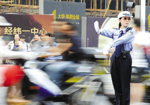 80后女交警酷暑中站崗 每日喝6斤白開水(圖)