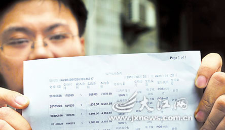 劉先生向記者出示消費賬單 記者溫煒鑫攝