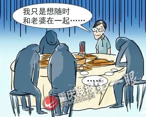 三個月前,家住重慶江北區(qū)盤溪路256—7趙偉波的妻子梁茜去世,三個月來,趙偉波一直沉浸在對妻子的哀思中。幾個兄弟伙常約他出去散心,但他的舉動讓大家覺得太雷人:每次參加飯局他都要占兩個座位、擺兩套餐具,有時還將妻子的靈牌擺在自己旁邊的座位上。