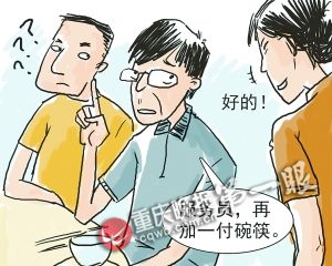 “昨晚,趙偉波的舉動確實讓我們很吃驚,雖然很同情他,但也覺得尷尬。”景通駕校教練廖鵬說,第一次和趙偉波吃飯就被“雷”了。前晚,廖鵬受朋友陳冰邀請,到龍山路“丁月玉兔莊”吃飯。“剛?cè)胱矽i就將趙偉波和另外幾個人介紹給我,說都是他的好朋友,一起出來散散心。”十余分鐘后,服務(wù)員開始擺碗筷,趙偉波向服務(wù)員提出,他要兩副碗筷。“當(dāng)時以為他要單獨拿個碗喝湯。”