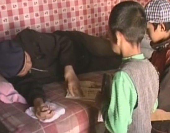 實在無法到校時王老師就躺在炕上給學(xué)生上課。
