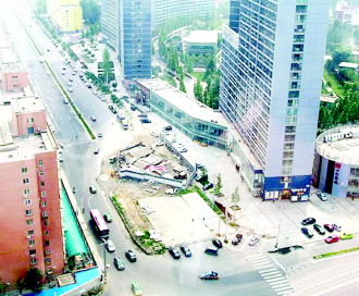 北京最牛“釘子戶”張長福的房子至今仍然“堅挺”在馬路中央。 (資料圖片)