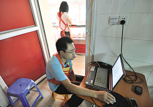 顧客少時,博士抓緊時間寫論文。