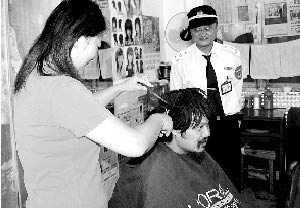 他穿著舊短褲,皮鞋已經看不出原來的顏色了,但上身的迷彩汗衫卻很新,這是經八路巡防隊隊員幾天前送給他的。
