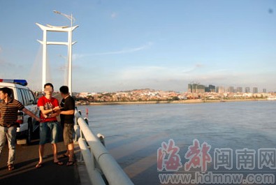 犯罪嫌疑人在晉江大橋拋尸地點指認現場。(圖片來源:東南網)