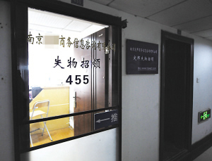 在先鋒廣場(chǎng)一樓大廳的商住公司引導(dǎo)牌上,記者并沒(méi)有找到“失物招領(lǐng)公司”的字樣;后經(jīng)多方聯(lián)系,才找到位于4樓的這家公司。