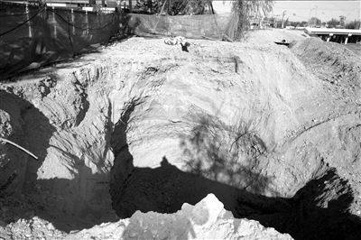 昨天凌晨兩點左右,還在工棚里熟睡的老李被一陣急促的敲門聲驚醒。“出事了,工地塌方啦,趕緊救人!”工友大聲呼救,老李和其他工友一起快速穿上衣服,拿起鐵鍬往工地沖去。老李說,他跑到工地發現,緊挨著樂園莊橋的一口豎井旁,約有10多平米的塌陷。此時,有人大喊:“下面埋了3個人,趕緊救人!”