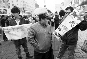 距11月11日“光棍節(jié)”還有3天,昨日,一群20歲上下的大學生在長春市桂林路上以迎“光棍節(jié)”為主題進行了一次快閃,驟然冷下來的天氣,被這群年輕人另類的表現(xiàn)“攪和”得似乎暖和了一點。