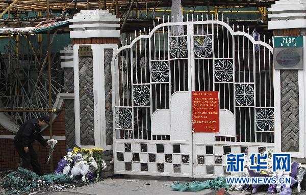 截至16日上午9時30分,上海膠州路特大火災(zāi)事故已導(dǎo)致53人死亡,另有70人正在醫(yī)院接受治療,其中17人傷勢嚴(yán)重。眾多市民自發(fā)來到事發(fā)的大樓外,向逝者敬獻鮮花,表達哀思。新華社記者 裴鑫攝
