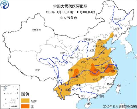 今天早晨到上午,遼寧中部、華北平原、陜西中南部、黃淮、江淮、江漢、江南北部、西南地區大部有輕霧,其中,江蘇西南部、安徽中南部、浙江北部、湖北中東部、湖南東北部、四川東部、重慶西南部等地的部分地區有能見度不足1000米的霧,局部地區能見度不足500米。