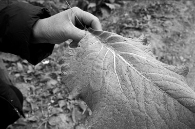 粉末狀物質附著白菜葉上 周鑫攝