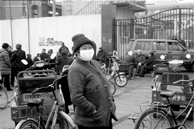 恒聚公司有南北兩扇大門,村民將數輛自行車、三輪車橫在兩扇大門前,恒聚公司被徹底圍困。在現場的數十名村民中多數都已經上了年紀,一些村民準備了桌子、板凳,以便休息。為防止“吸毒”,一些村民還戴上了口罩。