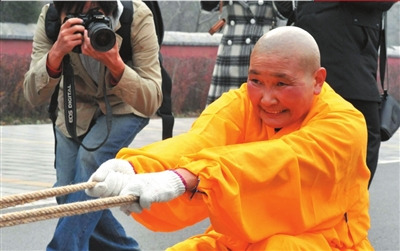 昨天上午10點,在北京門頭溝區潭柘寺前,6輛以繩索相連、總重量約9噸的汽車被一個人徒手拉動了15米,引來游客陣陣掌聲。這名拉動6車的大力士并非威猛大漢,而是一名已年過半百的女僧人,這更是讓觀眾連連稱奇。