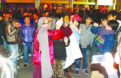 南京圣誕夜街頭現雷人 搞怪男索要性感擁抱(圖)