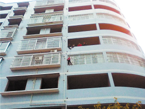 2月10日,開縣平橋移民新區(qū)一棟居民樓上演驚險一幕。一位女孩在腰上僅系有一根繩子的情況下,從五樓降至四樓回家取鑰匙,所幸在整個過程并未發(fā)生意外。