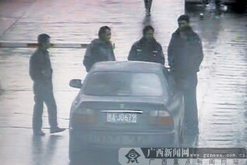 收費站的監控錄像顯示:16日下午3時25分,這輛掛著桂AJ0679車牌的本田小轎車出現在收費站一收費通道口,準備出城。一名身穿制服的女收費員跑到車頭前,攔下了這輛車。隨后,收費站的負責人來到現場交涉。不久,有民警前來處理。