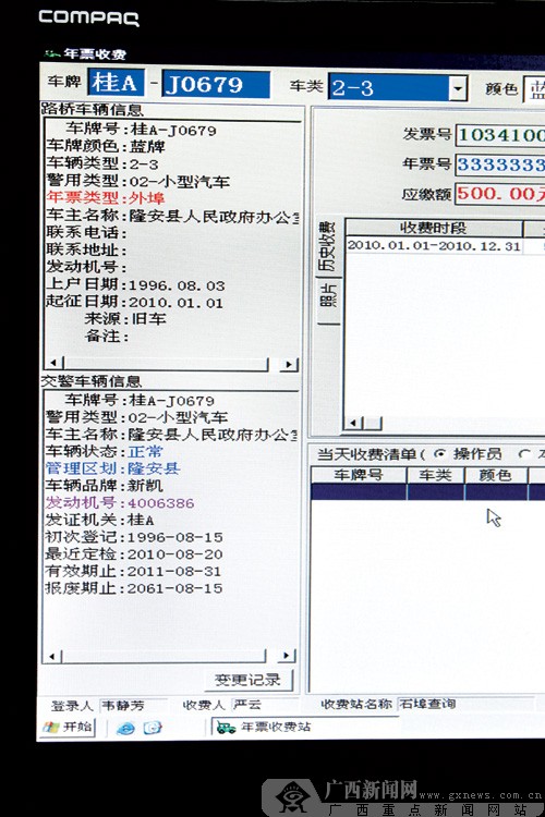 收費站的信息系統顯示,轎車車主為“隆安縣政府辦公室”。陶海華 胡志偉攝