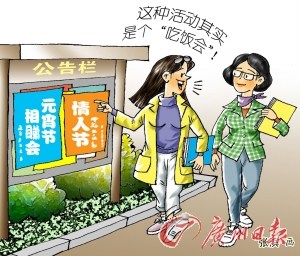 西方情人節才走,號稱中國情人節的“元宵”又接踵而至,一個星期連續經歷兩個“情人節”的洗禮,淡定的寂寞的心又變得躁動——“剩斗士”們想找一個人相伴而過。或許正是看中雙節過后單身男女內心的不安,形形色色的相睇活動又“活躍”起來。不過對于有過三次參加相睇活動經歷的網友“武松打虎”而言,靠相睇尋真愛是“浮云”,他甚至直言有的相睇活動只是“吃飯會”,還不如上網發帖征女友來得“快狠準”……