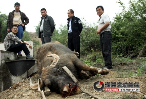“這頭水牛發(fā)瘋了,快來幫忙啊。”附近村民聞訊大喊,并報了警。