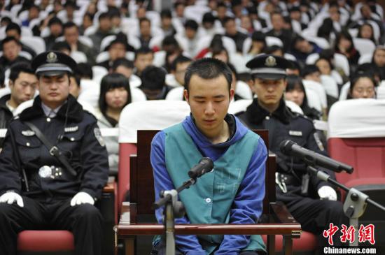 西安音樂學院大三學生藥家鑫開車撞傷人后又連刺數刀致對方死亡一案,于3月23日在西安市中級人民法院公開審理。圖為被告人在庭審現場。中新社發 冽瑋 攝