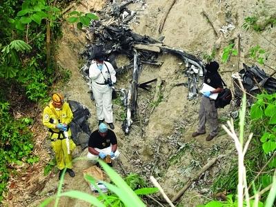 救援人員在墜機(jī)現(xiàn)場(chǎng)工作。