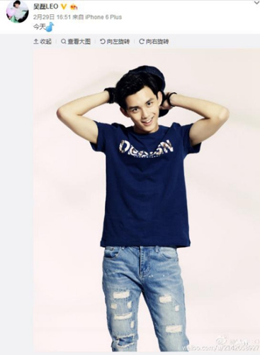 資料圖:吳磊曬帥照。(吳磊微博截圖)