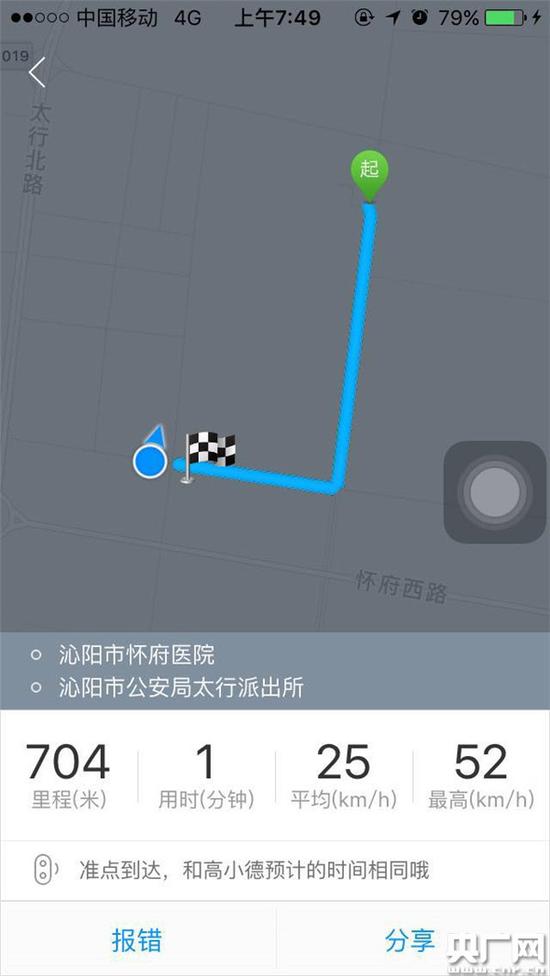 最終派出120急救車的是沁陽(yáng)市人民醫(yī)院,導(dǎo)航軟件顯示,該院距離太行派出所1.3公里,開(kāi)車3分鐘。而最近的懷府醫(yī)院,距離太行派出所只有765米,開(kāi)車1分鐘。