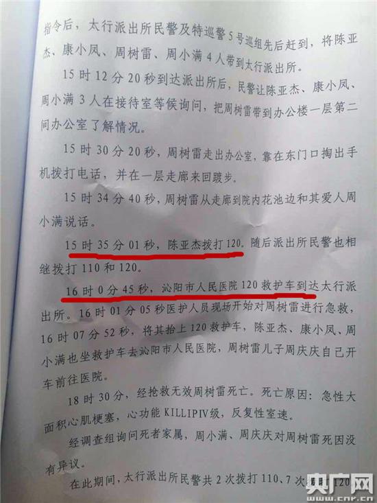 120救護(hù)車最終到達(dá)太行派出所的時(shí)間是16點(diǎn)0分45秒,此時(shí)距離陳亞杰首次撥打120電話已經(jīng)過(guò)去25分鐘44秒。