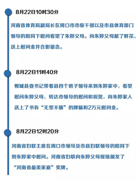 河南省市縣領導慰問朱婷一家 央視:少些套路多些真誠