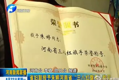 文章表示,8月22日,省市縣各級領導紛紛來到女排主攻手朱婷的老家,慰問英雄父母朱安亮和楊雪蘭,授予朱婷“河南省三八紅旗手”榮譽稱號,同時授予朱婷家庭“河南省最美家庭”榮譽稱號。鄲城縣委、縣政府贈送了“無堅不摧”牌匾和2萬元慰問金。