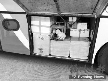 高速交警二大隊的查警官介紹,26日上午11時許,一部山東濰坊開往石獅的客車在馬尾收費站被攔下檢查。車里只有十幾名乘客,但所有無人座位上都堆放著乘客的行李,有的則綁在車內行李架上。隨后民警要求司機打開行李艙,結果令人大吃一驚:40多個白色泡沫箱將行李艙堆得滿滿的,司機承認泡沫箱內全是山東運往馬尾的海鮮。“艙門一開,還傳來狗叫聲,還有‘咕咕’的叫聲,原來是幾只寵物狗,還有鴿子、兔子……”