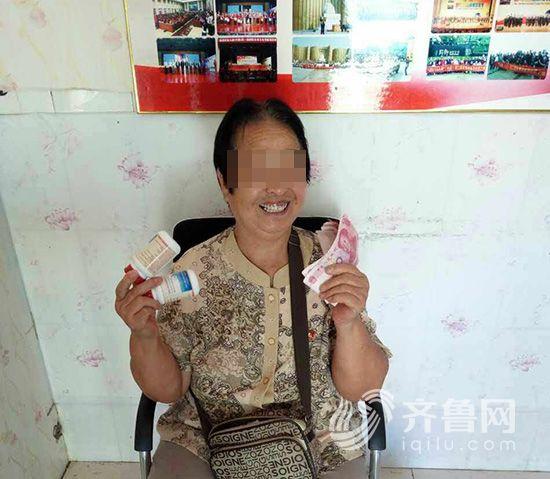 老人拿著買保健品的錢和買的保健品合影