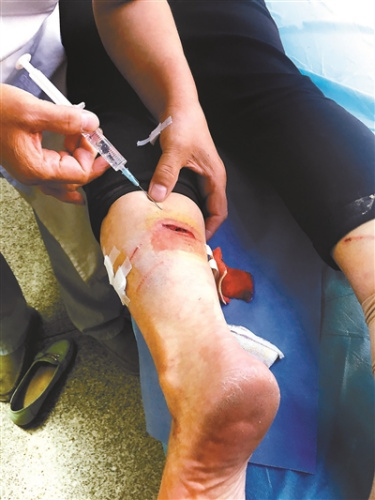 在等候打針的隊伍中,北青報記者還找到其他三位被這只狗咬傷的市民。這些市民受傷的部位大多在小腿處,可以清晰地看到被狗牙咬過的凹痕。