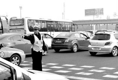 ②昨天,京承高速收費站出京方向擁堵,交警在疏導交通。